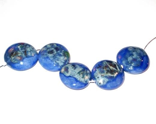 Perlepakke av keramikk. 5 stk håndformet runde perler. E109