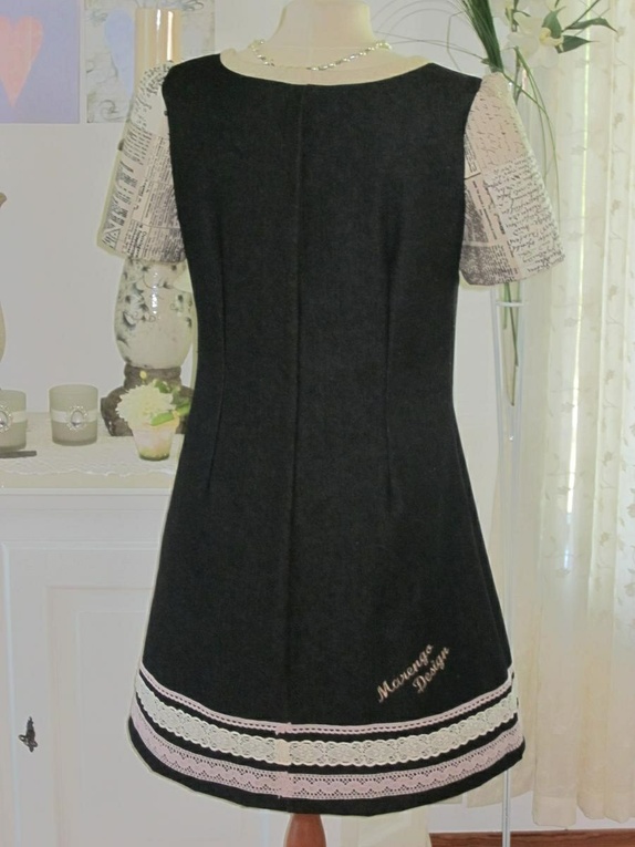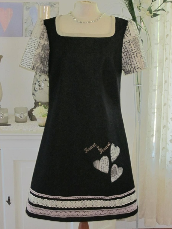 Svart olakjole pyntet med bånd , broderier og applikasjoner.