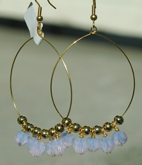 Øreringer i gullfarge med swarovskikrystaller i rosa/lilla-farge og gullkuler.