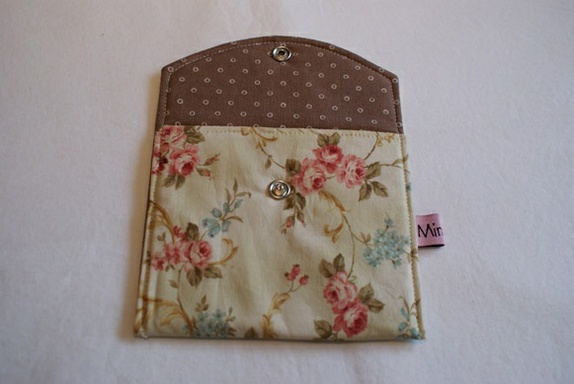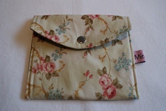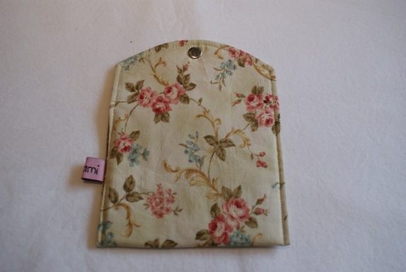 Fargene på etuiet/pungen går i duse romantiske nyanser med vakre blomster.