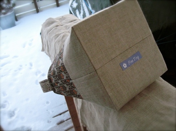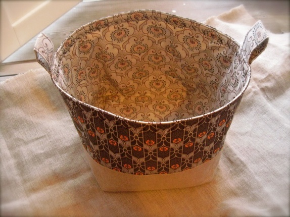 Praktisk og romslig kurv laget i grov lin og bomull. Foret med passende stoff og med strykeinnlegg for bedre stabilitet og styrke.