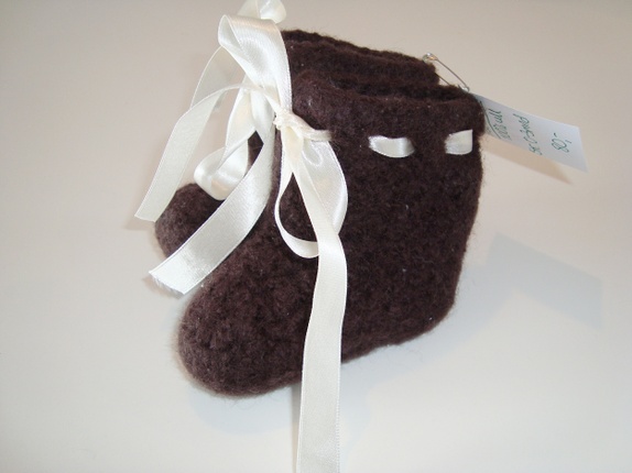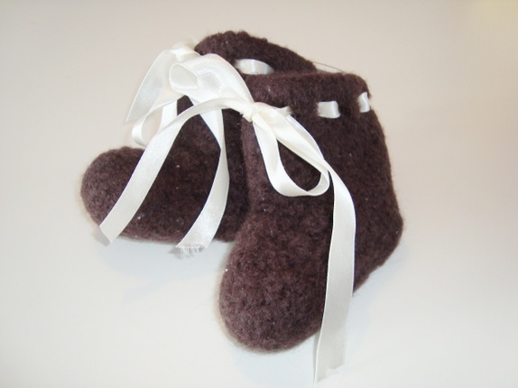 Produktbeskrivelse: Tøffe babytøfler heklet i 100% ull og lett tovet.