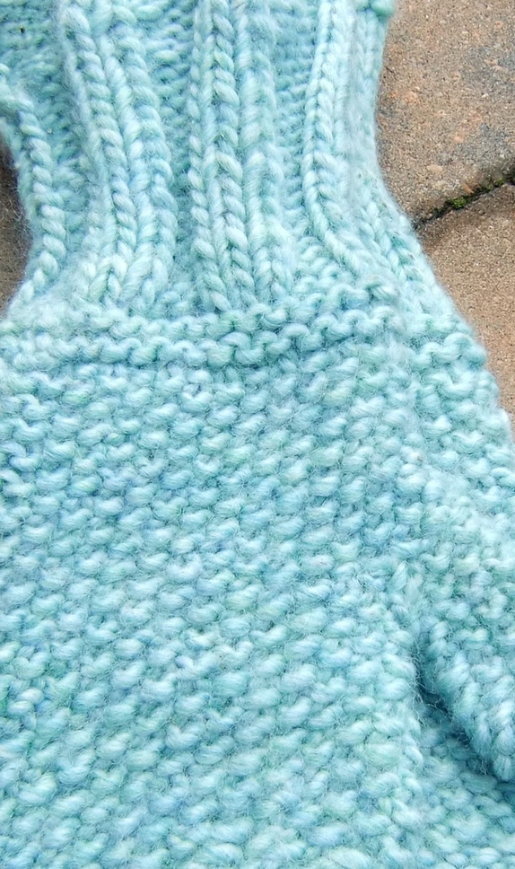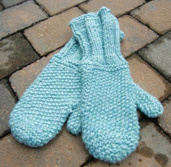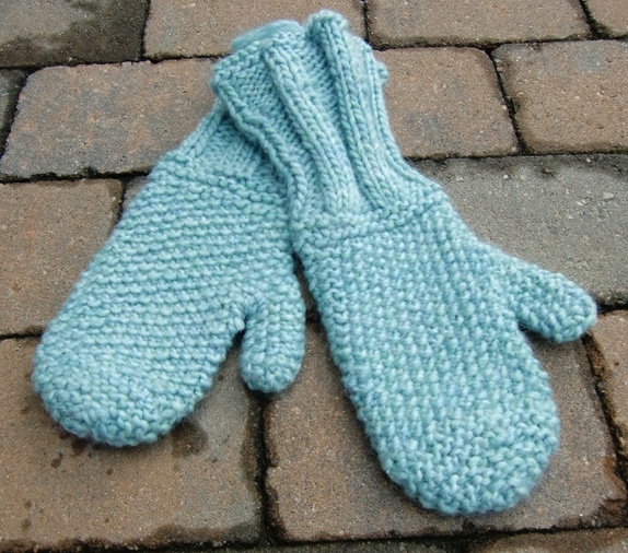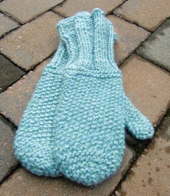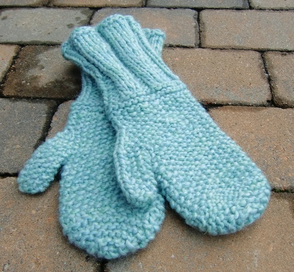 Deilige votter i sjøgrønt.Strikket i vrangbordstrikk og perlestrikk.