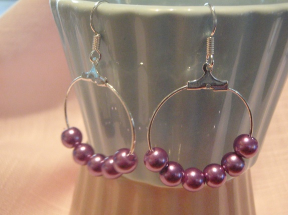 Delikate kreolringer, i silver plated med store, lilla perler.