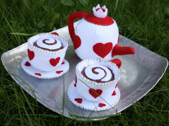 Lekesett til en liten prinsesse eller prins. Eller flott som dekorasjon på kjøkkenet eller stua :)Inneholder mønster til settet og detaljert veiledning. Passer bra for både nybegynnere og deg som har masse sykunnskaper. Sydd i 1mm filt.