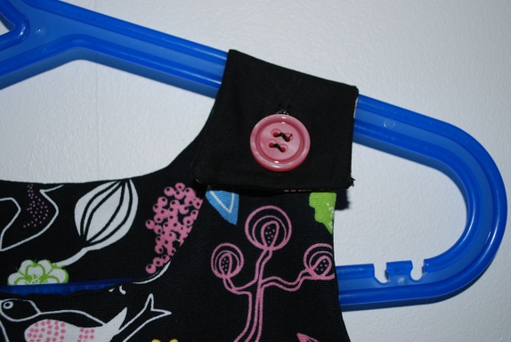 Kjole i bomullsstoff, vaskes på 40 grader. Mønstret foran og sort bak.