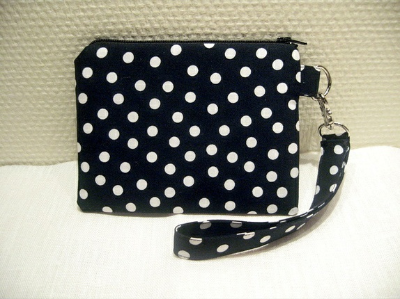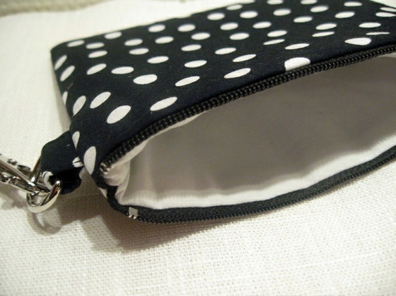 Sydd av svart bomull med hvite prikker.
