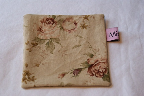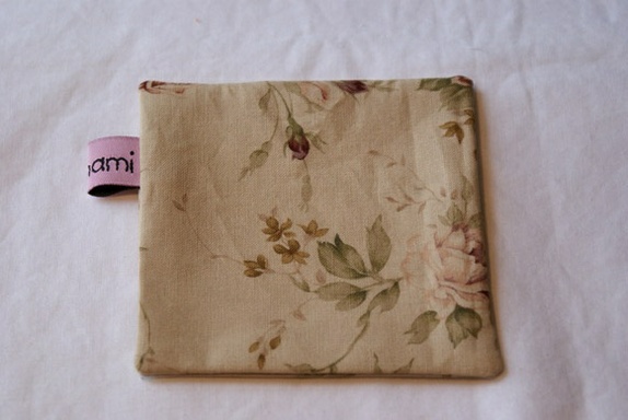 Lavendelposen har duse romantiske farger med motiv av blomster. Posen har samme type stoff på begge sider.
