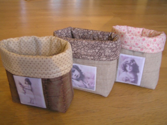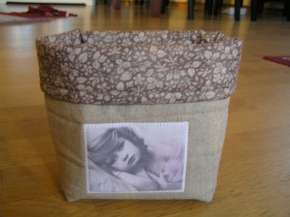 Liten pose med koselig vintagebilde applikert på. Til oppbevaring av div. småting.