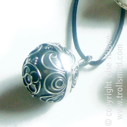 Disse kulene gir fra seg en forsiktig tingelinglyd som fosteret kan høre fra ca 14 uke. Nydelig smykke!