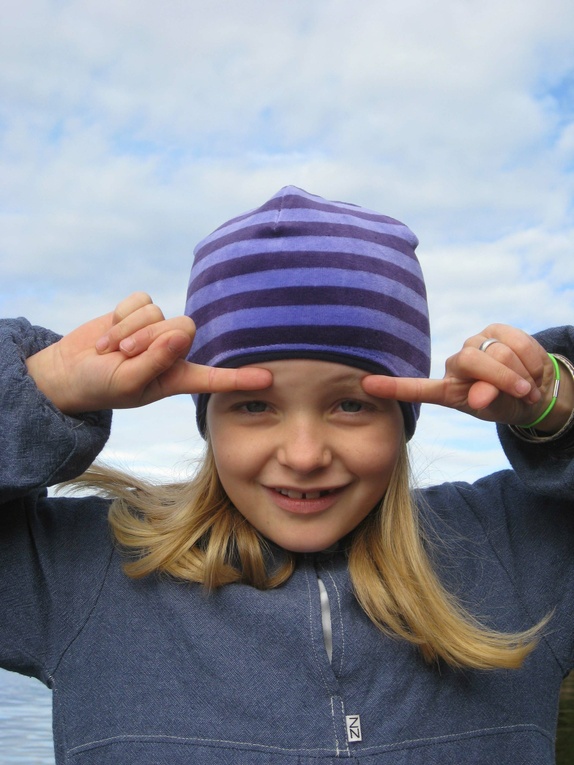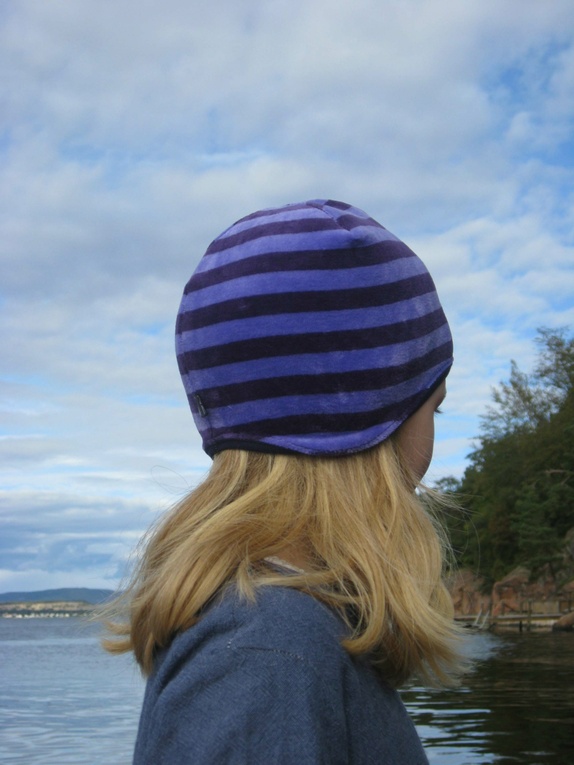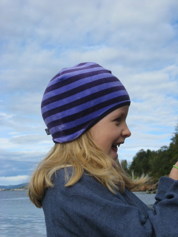 Luen er sydd i en stripete chenille i 2 ulike lilla farger. Avslutningen på luen er kantet med en myk, dyp lilla jersey.Luen finnes i 4 størrelser, XS, S, M og L.