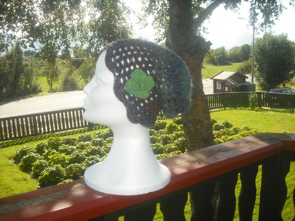 Nydelig heklet lue i sjattert garn. Fin pynteblomst som er heklet på siden. Passer til jente eller dame med luestr. 54-55.