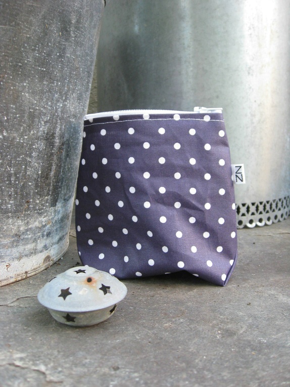 Dyp lilla liten pung med hvite prikker