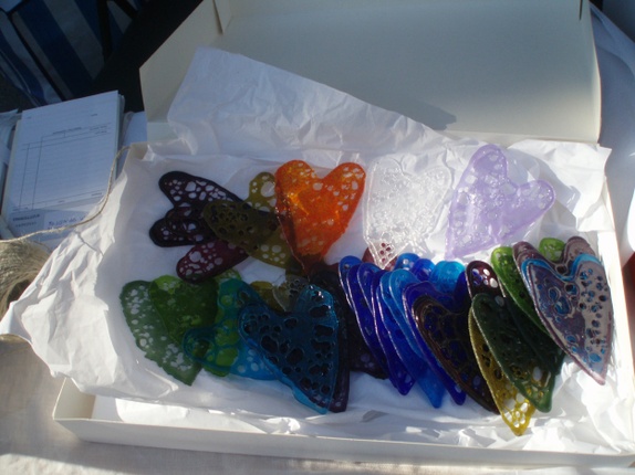 4 hjerter X, i glass, PAKKETILBUD! Valgfrie farger