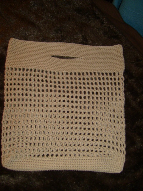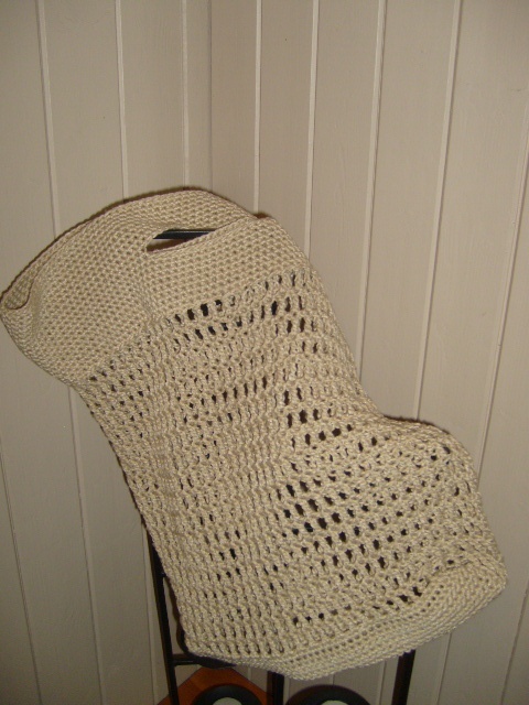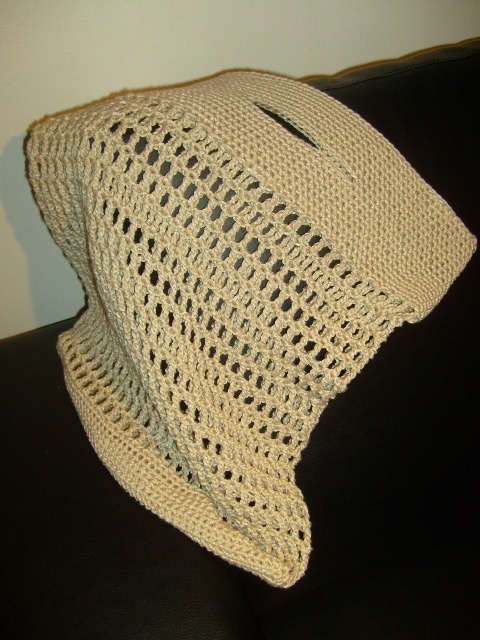 Kjempekjekk nett/veske til allsidig bruk heklet i et linfarget garn som går til det meste.