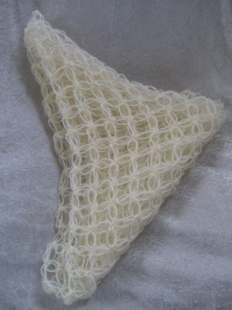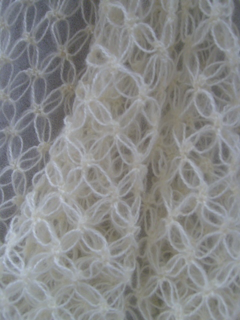 Et herlig og mykt englemaskesjal heklet i nydelig mohair i naturhvitt. Et kjempedeilig sjal å kaste over skuldrene eller ha rundt halsen som skjerf. Godt og varmt,samt et sprekt tilbehør til antrekket ditt.