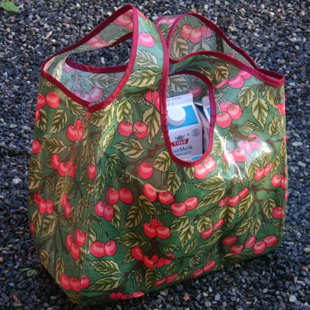 Posen er sydd etter modell av de i plastikk og rommer utrolig mye - du får enkelt en hverdagshandel i en slik - for helge- og høytidshandel trenger du nok noen flere. Den er mye mer behagelig å bære enn engangsposene og du slipper å engste deg for at posen ryker selv om du har handlet melk til hele familien (den rommer minst 8 liter).