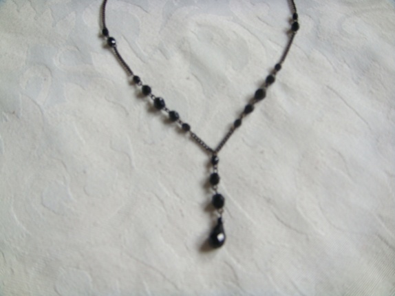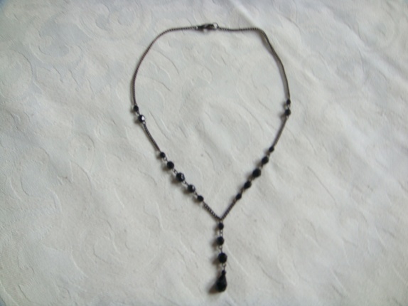 Kjedet er laget av sorte perler og sort/kobberfarget lenke. Nikkel fritt. Ferdig ned satt. Se fler smykker i butikken