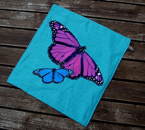 lys opp hjemmet med et fargerikt turkis putetrekk i lin med vakre sommerfugler på!