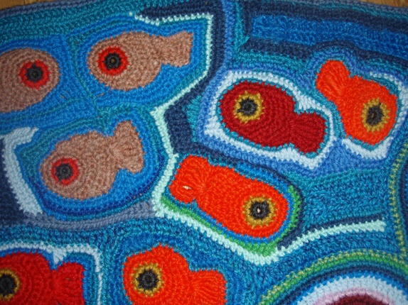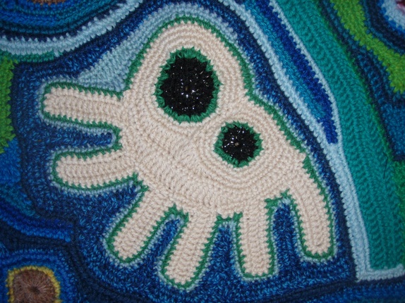 Teppet er laget i frihekling, det er derfor ikke helt firkantet.