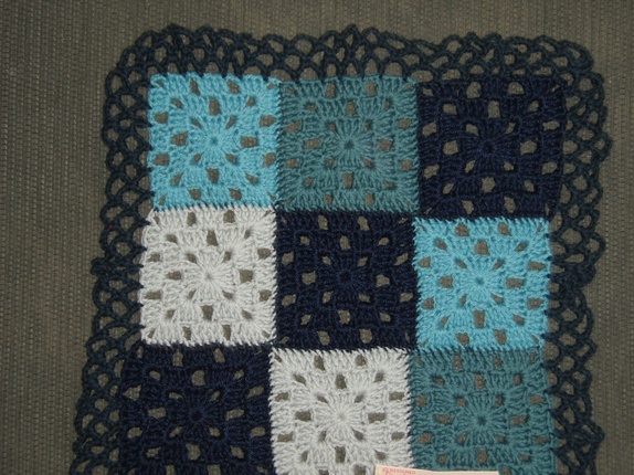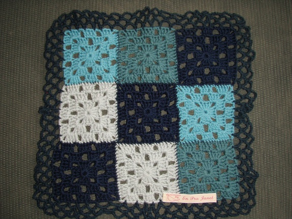 Kluten består av 9 bestemorruter som er sydd sammen og så har jeg heklet en kant rundt.