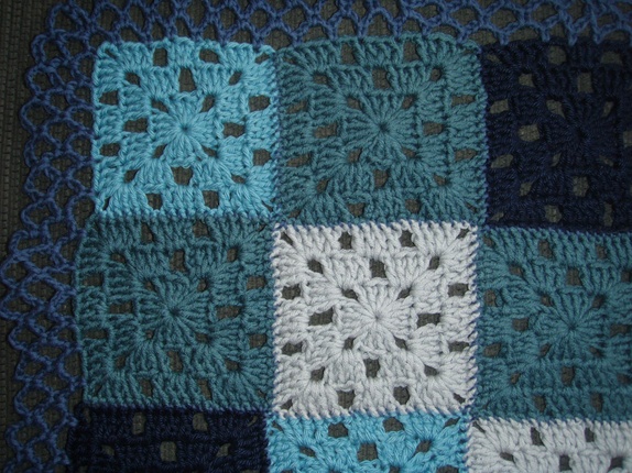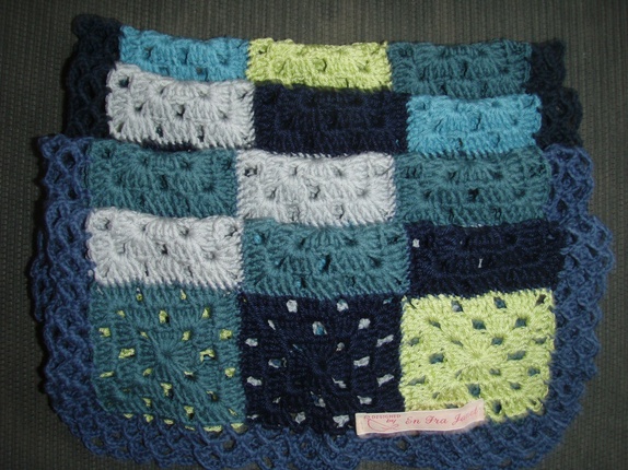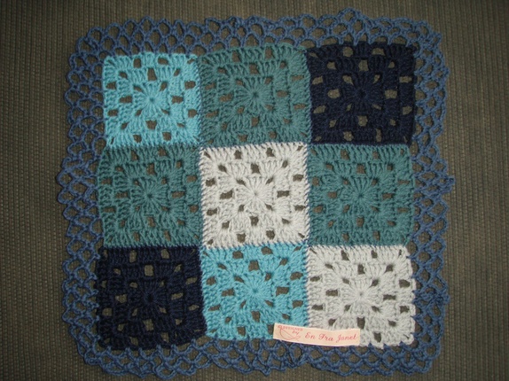 Kluten består av 9 bestemorruter som er sydd sammen og så har jeg heklet en kant rundt.