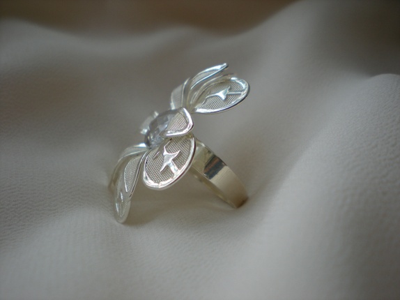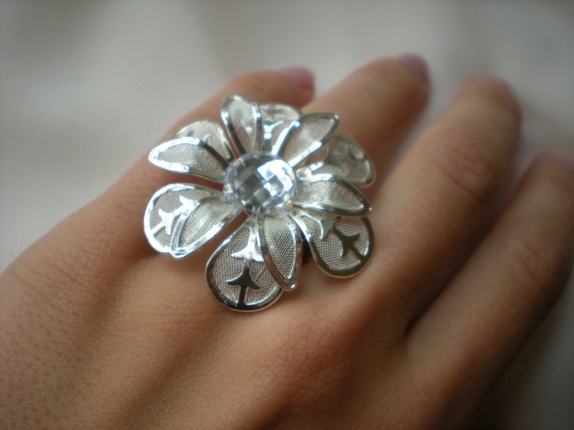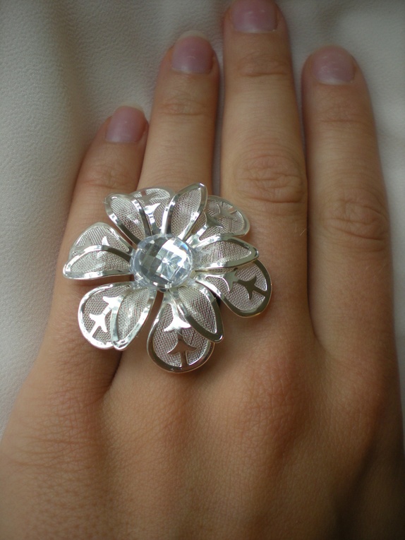 Ringen er justerbar i størrelsen, og bladene på ringen kan bøyes til ønsket form.