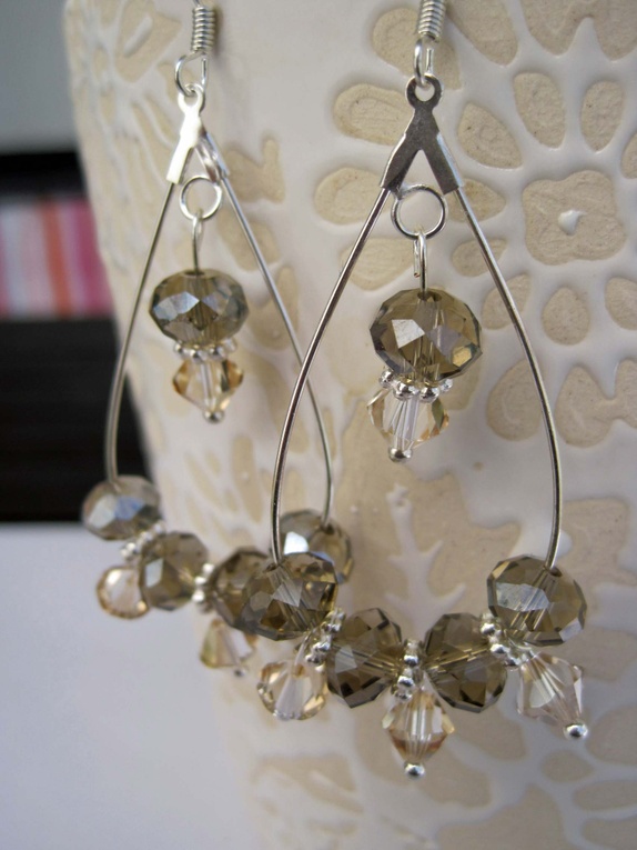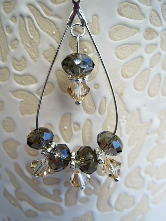 Lekker ørepynt med glassperler og swarovski krystaller i champagne farger.