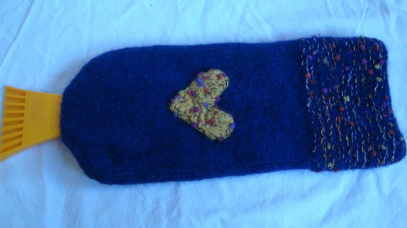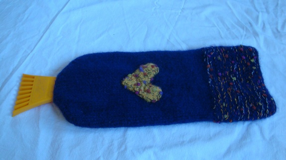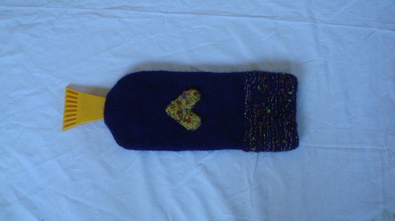 Isskrapebotten er pyntet med et tovet hjerte og er i mørk lilla.