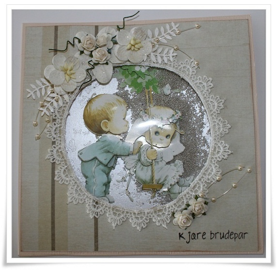 Dette kortet er et 3D Die-cut på motivet , Her har jeg laget et vindu som er fylt med sølv perler. Det gir en flott effekt synes jeg . Litt dårlig bilde da det er glans i selve motivet str er 15x15Kommer i klar konvolutt