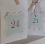 Nydelig adventskalender i dus turkis og dyp rød farge. Designet av Vibeke Spigseth. Ferdig montert på hvite papirposer.