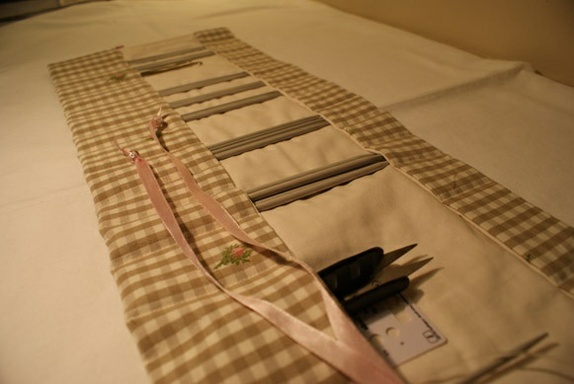 Etui til strikkepinner, heklenåler og andre sysaker.