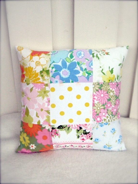 Hyggelig putetrekk sydd av gjenbruksstoffer fra 60-tallet. Stoffene er vasket og strøket mange ganger opp gjennom årene slik at overflaten er myk og glatt å ta på.
