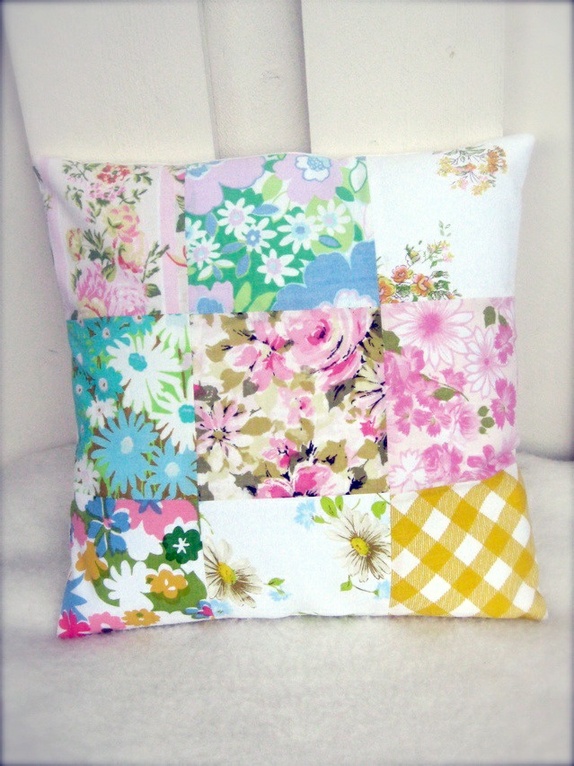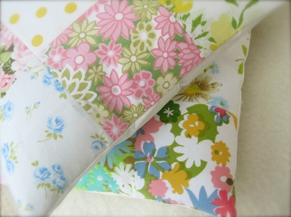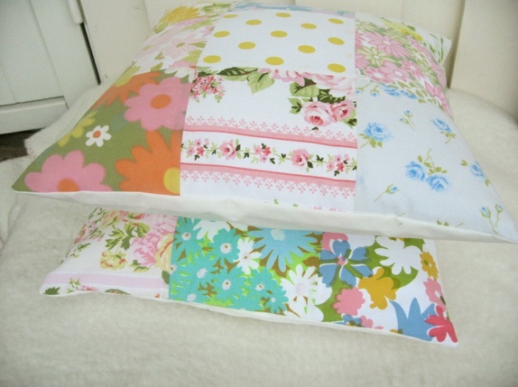 Hyggelig putetrekk sydd av gjenbruksstoffer fra 60-tallet. Stoffene er vasket og strøket mange ganger opp gjennom årene slik at overflaten er myk og glatt å ta på.