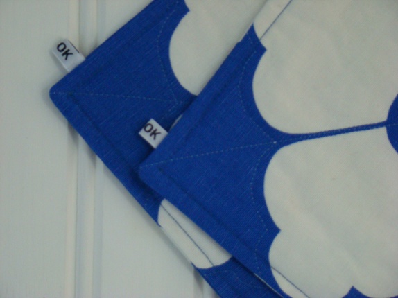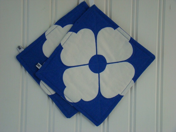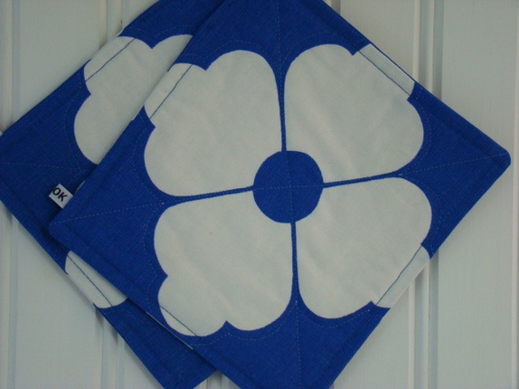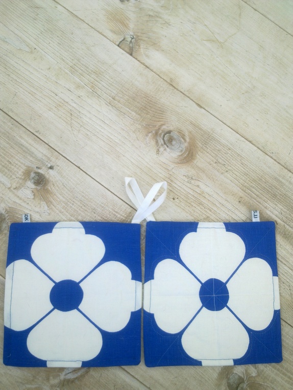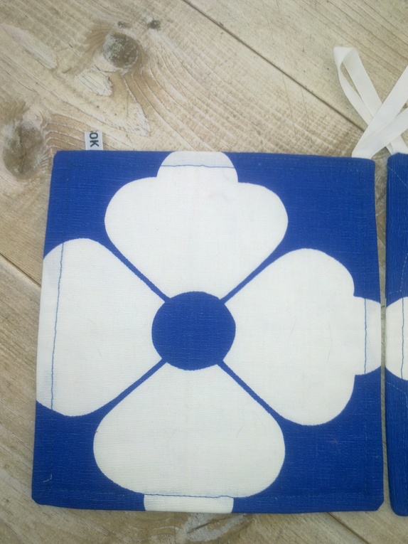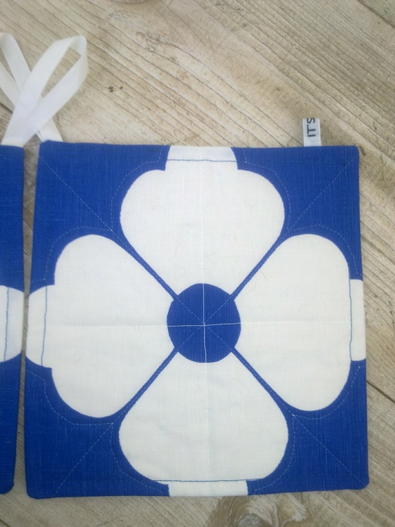 itsok Gryteklut. Sydd av vintagestoff. Vattert med Quilters Dream Cotton og dermed quiltet. 17 x 17 cm.