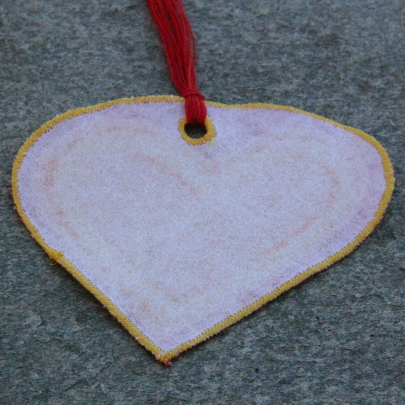 Baksiden er vliseline som det er lett å skrive på. Bruk helst en tusjpenn. Snora er laget av vevrenning funnet på et loppemarked, denne kan selvsagt fjernes hvis du ønsker å bruke ditt eget gavebånd.