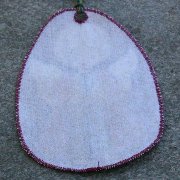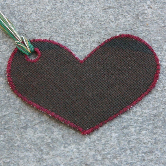 Baksiden er vliseline som det er enkelt å skrive på. Bruk helst en tusjpenn. Snorene er laget av vevrenning funnet på loppemarked. Denne kan selvsagt fjernes om du vil bruke ditt eget gavebånd.