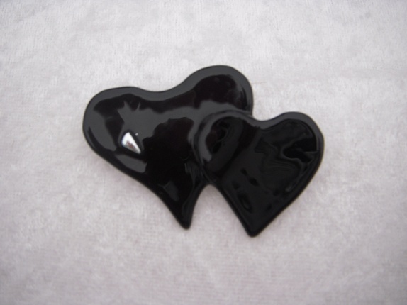 Unikt, sort anheng i glass, 2 hjerter i ett. Røroppheng bak.