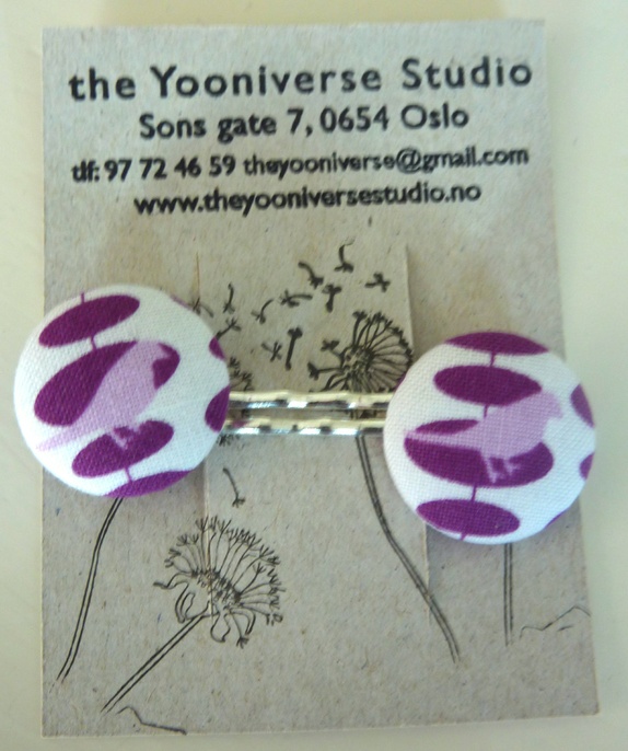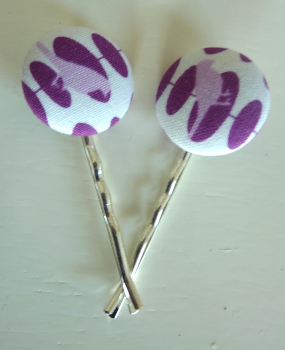 2 stk bobby pins for jålete jenter i alle aldre. Stoff knapper 23mm i diameter trukket med bomullstoff med jålete jenter i alle aldre.