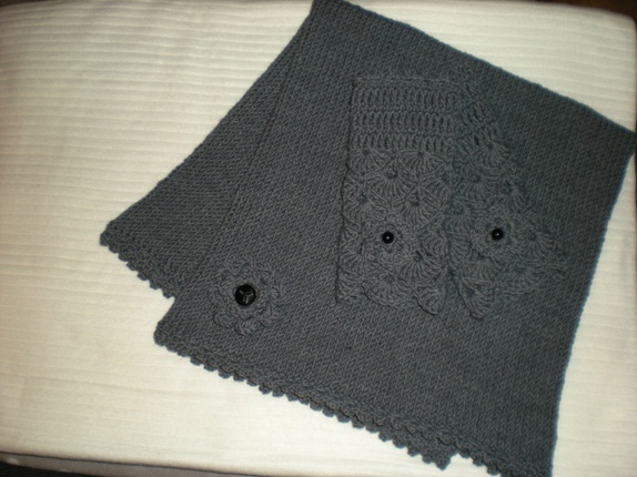 Tubehals m/brosje og pulsvarmere i koksgrått