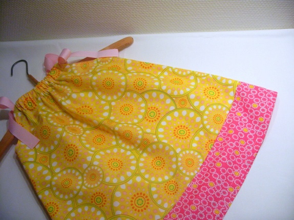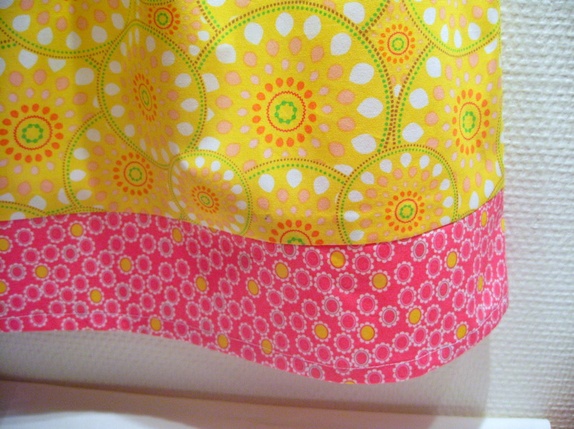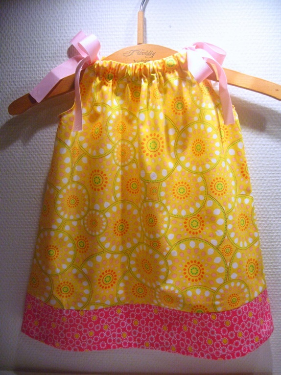 Den er sydd i deilig bomull av god kvalitet. Knall gul og rosa.