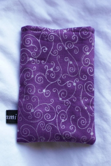 Etuiet er foret med ensfarget lys lilla bomull stoff.