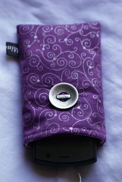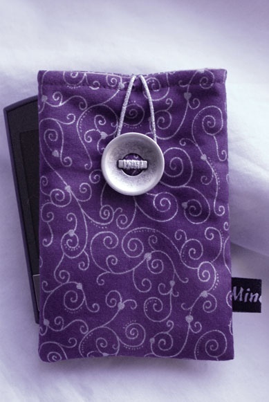 Lilla mobiletui med sølv mønster