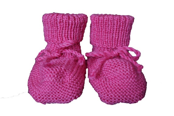 Str. 4-7 mnd.100% ull.Vaskes på ullprogram.Veldig god passform til små barneføtter med knyting foran.