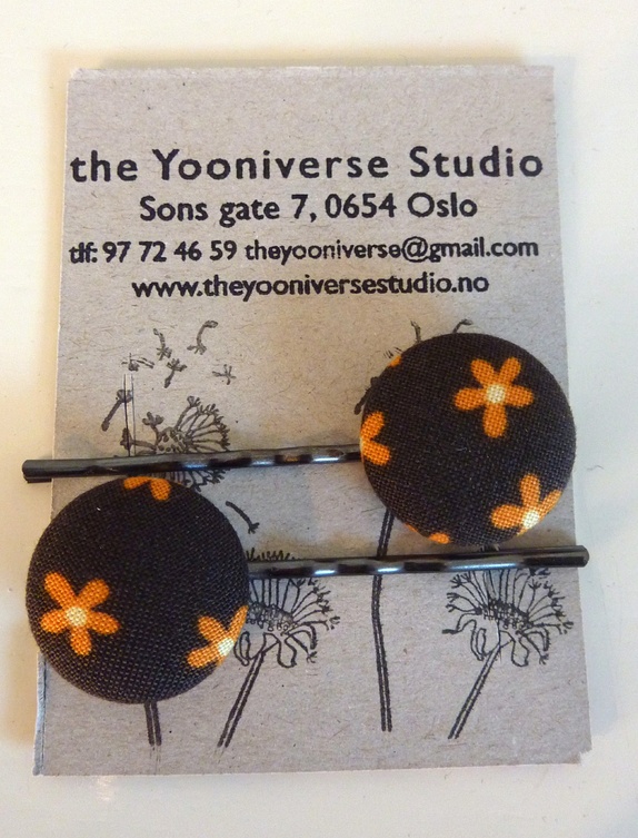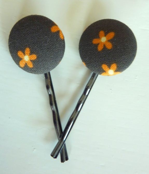 2 stk bobby pins for jålete jenter i alle aldre. Stoff knapper 23mm i diameter trukket med bomullstoff.