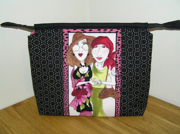 Stor toalettmappe med 2 små stikklommer inni. Ca. 30 x 22 cm.