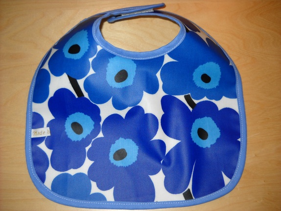 Smekke med Marimekko voksduk forside, hvit bomull bakside.