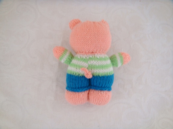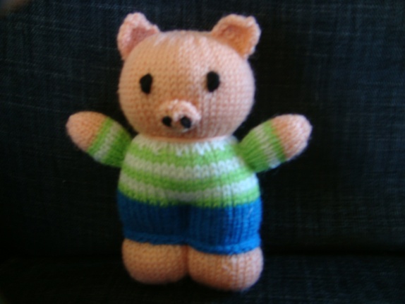 Grisen er strikket i Babyull ( 100% marino ull)Han er 15 cm lang.