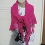 ( Sjal,strikka sjal, strikka sjal med hekla blonde- kant, maskinstrikka sjal, maskinstrikka skjerf, Strikka sjal fra strikkestugu, strikka sjal i tuckmønster, cerise sjal strikka bi roma garn med hekla blonde, peiskos, hyttetur, påske, kontor, julegave, julepresang, gave, vertinnegave, julegåve, bursdagsgåve, bursdagsgave,)