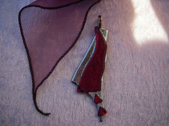 Spesielt smykke i glass, passer godt som julesmykke. Ca 6-7 cm langt.